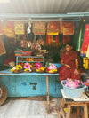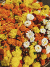 They collect all the flowers from a huge temple in Mahalaxmi, dry them and then use to colours the fabrics.