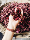 The colors of the clothes are taken from the flowers of the temples. In India it is used to offer flowers to the divinities, so an immense number of flowers every day is offered with devotion.The reality of Bombay with which we work deals with the collection of flowers offered and that should be wasted, exposes them to the sun, grinds them "offered to the God" and blessed. It is therefore very ethical, natural and poetic to imagine wearing a dress made with divine flowers. And it has a completely different energy level than clothes with chemical dyes.