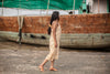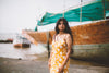 Un abito estivo di seta, tinto con la tecnica naturale dei fiori donati ai templi indiani, che danno colori...